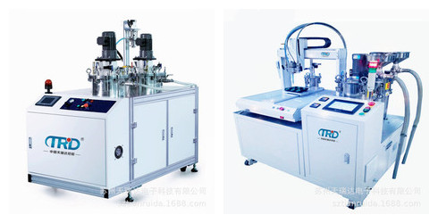 為了對電控板進(jìn)行涂層隔離保護(hù),所用材料從早期漆膜到以聚氨酯為主體的主膠粘劑和一定比例的固化劑膠,在一定溫度下混合,密封在電控板表面,固化后形成良好的保護(hù)層。雙液自動注膠機(jī)是實(shí)現(xiàn)雙組份膠和兩種液體的加熱、抽真空、攪拌,然后實(shí)現(xiàn)混合灌封。