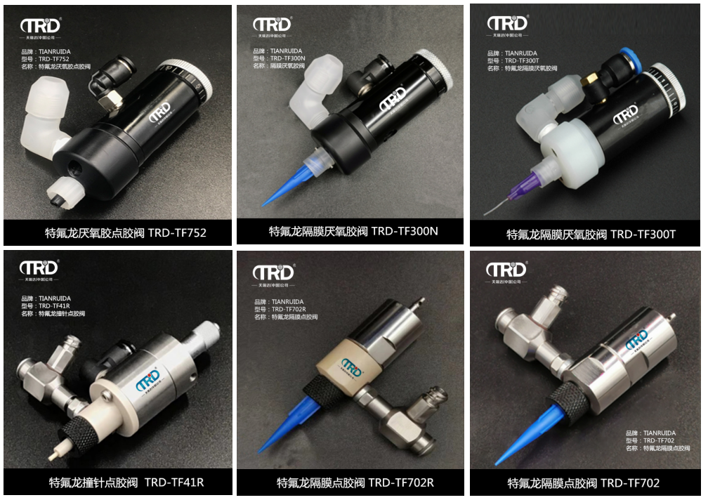 TRD-TF702特氟龍隔膜點膠閥本體經鋁合金陽極氧化處理,密封材料采用最新四氟材料,接觸膠體部分均為耐腐蝕材料。外形小巧,質量較輕,可調的流體流量控制,耐高溫。