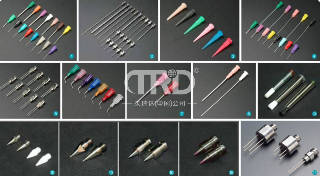 產品用途 主要應用于SMT、LED、半導體制造、醫藥、液晶面板的框膠涂布、晶振器封裝、CCD密封膠涂布、BGA封裝涂布等點膠行業。 產品特點 ◆ 采用PP針管具有耐腐蝕性,可以延長堵膠現象,適用于各種快干膠的使用場合 ◆ 皆采用獨特工藝,精密拋光無毛邊,可實現出膠精確,杜絕拉絲,雙螺旋鎖緊及大面積旋轉設計,不僅使配合更安全而且拆卸更容易 ◆ 可以任意裝卸的金屬針頭,精密焊接工藝使點膠控制更精密 ◆ 色系種類繁多,主要應用于SMT、LED、半導體制造、醫藥等點膠行業。